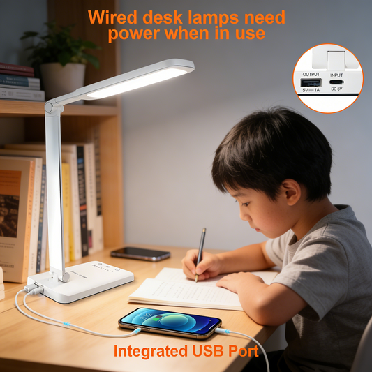 Dimmable LED Desk Lamp with USB Charging Port - 5 Color Temperatures for Study & Work