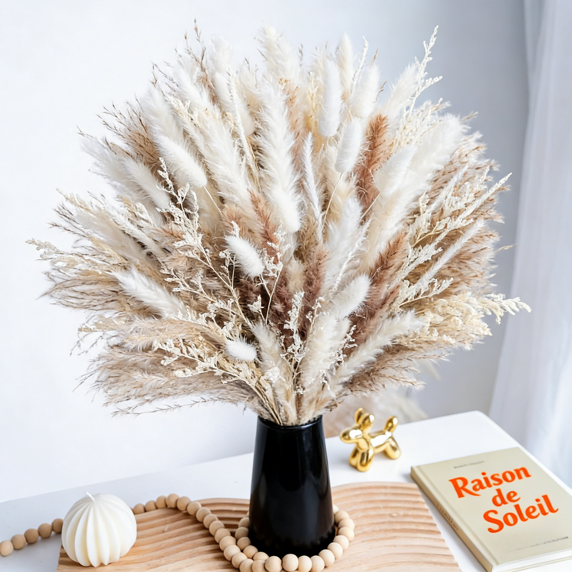 🌾 Abundant Quantity: 96-piece set includes natural pampas, white pampas, reed grass, bunny tails and more for versatile styling.